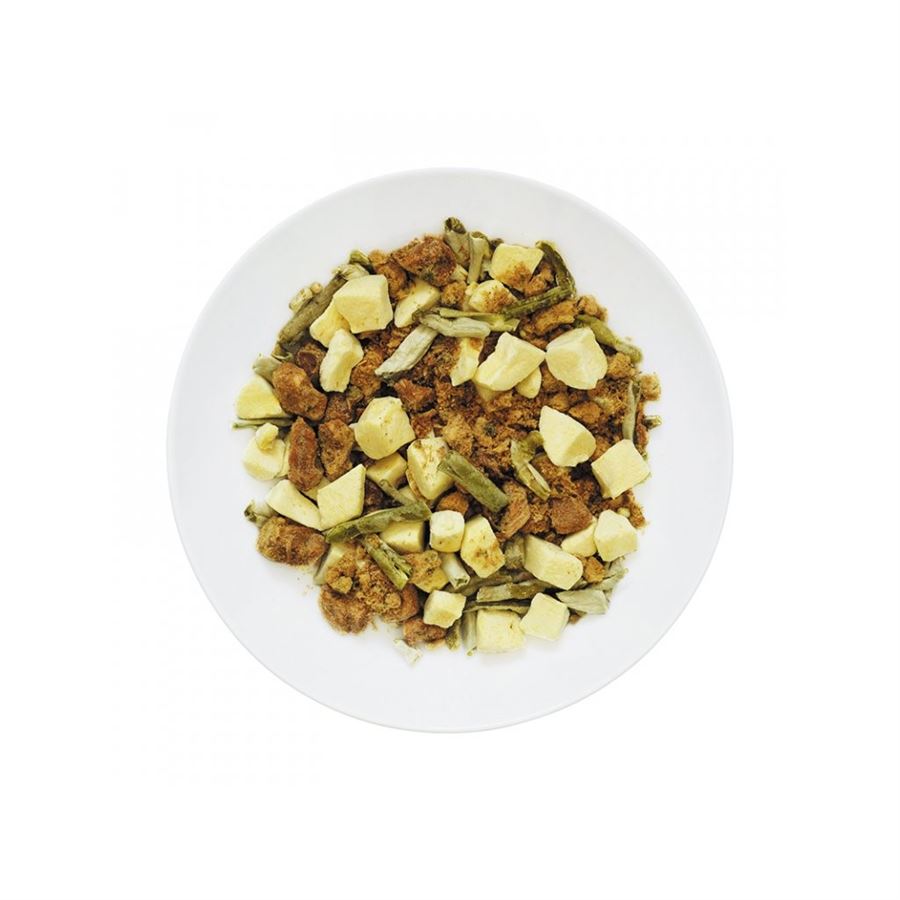 V balení nejsou žádné umělé přísady, žádné přidané cukry, žádný palmový olej a žádné konzervační látky. Jídlo je vyrobeno ze 100% přírodních surovin.