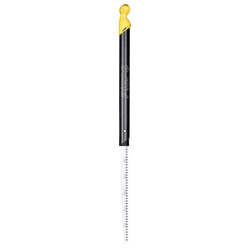 Teleskopická rukojeť s integrovanou pilou na sníh a dřevo.