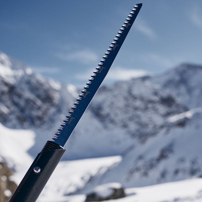 Speciální tvar zubů pily pro řezání sněhu a dřeva.