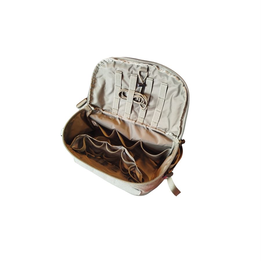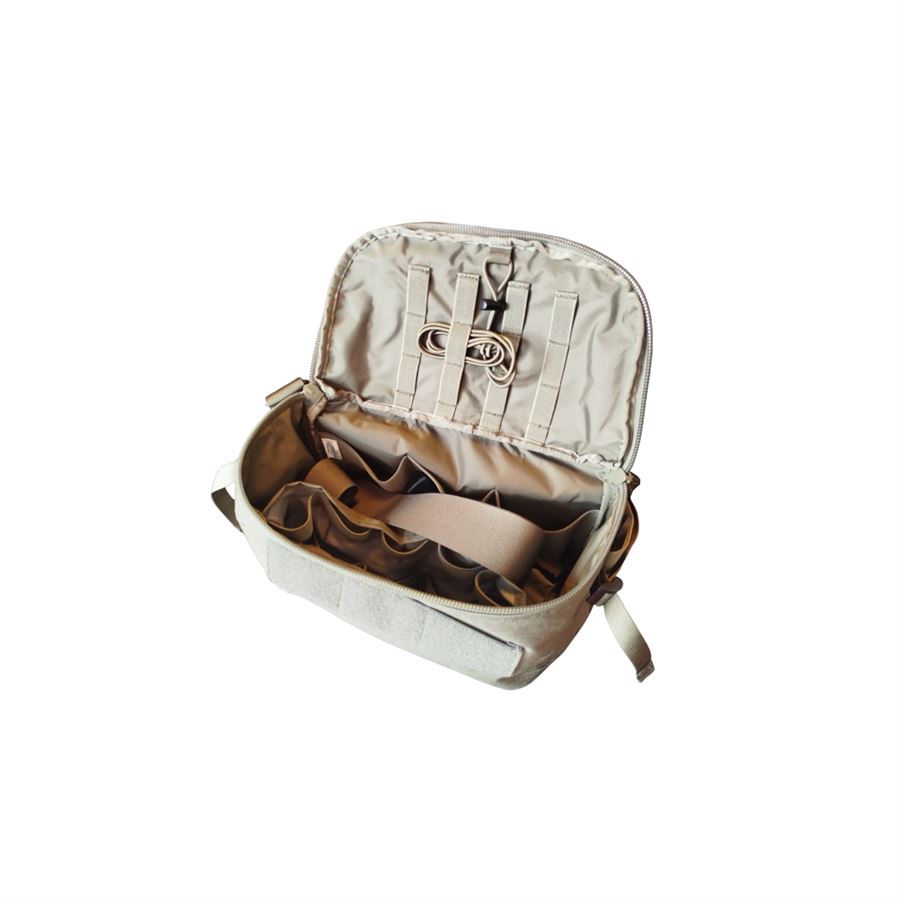 Konečně ledvinka, která rozumí potřebám zdravotníků a záchranářů. 1. Navržena zdravotníky pro zdravotníky Tato ledvinka nevznikla v kanceláři designéra. Vytvořili ji lidé, kteří rozumí tomu, co znamená pracovat pod tlakem. Každý detail - od rozložení kapes až po typ zipů - je výsledkem praktických zkušeností z terénu. Vnitřní prostor je jasně členěný tak, abyste našli to, co potřebujete, i poslepu. Žádné překopávání, žádné hledání. Všechno má své místo. 2. Materiál, který vydrží cokoliv Cordura® 500D s úpravou IRR není jen marketingové slovo. Je to materiál, který používají vojenské jednotky po celém světě. Odolá oděru, vlhkosti, UV záření i extrémním teplotám. Když na vás spoléhají lidské životy, nemůžete si dovolit vybavení, které selže. 3. Revoluční přístup k obsahu Zapomeňte na ledvinky, kde musíte všechno vytahovat, abyste se dostali na dno. Víko hlavní kapsy se otevírá směrem nahoru - máte tak okamžitý přehled o celém obsahu a přístup ke všemu najednou. Víko obsahuje specializované pouzdro na nůžky - vždycky po ruce, nikdy se neztratí. 4. Adaptabilita, která nemá konkurenci Jedna ledvinka = čtyři způsoby nošení: