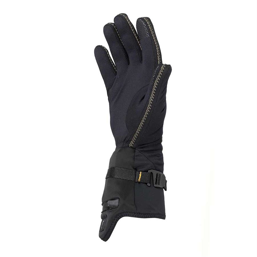 (lyžařské rukavice, rukavice na motorku nebo sněžný skútr, outdoorové rukavice, pracovní rukavice ap.). Technologie pletení v kombinaci s recyklovaným polyesterem poskytuje účinnou izolaci a prodyšnost v chladném počasí, vyhřívaná a pružná linka S.E.T. distribuuje teplo rovnoměrně kolem všech prstů a vydrží hřát až 7 a půl hodiny. Tlačítko ovládání vyhřívání je umístěno ve spodní části manžety pro snadný přístup, i když je přes něj nasazena rukavice. K dispozici jsou tři úrovně vytápění.